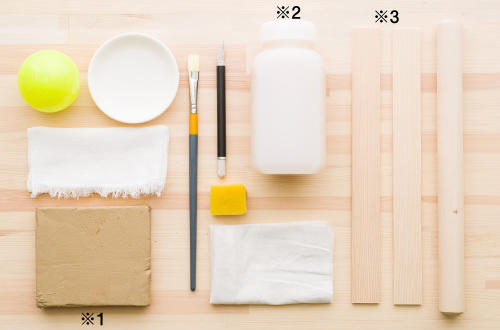 ※オーブン陶芸用粘土・コーティング剤は画材店やクラフトショップに加え、インターネットでも購入可能です。その他の道具は、100円ショップの商品や自宅にある身近なもので代用できます。