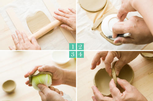 自分好みのうつわを選ぶ時間はとても楽しいですが、「何を作ろう?」と考える時間には、また別の楽しみがあります。陶芸教室の生徒さんのなかには「餃子専用のお皿を作りたい!」など、完成したうつわで何を食べるかを想像してから作品を作る方も。食器棚にぴったりと合うジャストサイズのうつわや、手持ちのランチョンマットとコーディネートしたうつわなど、既製品では手に入らないオリジナルのうつわを作ってみてください。今回作る三連プレートは調味料の色合いが際立つよう、粘土の風合いを活かしたシンプルな造形にしてみました。