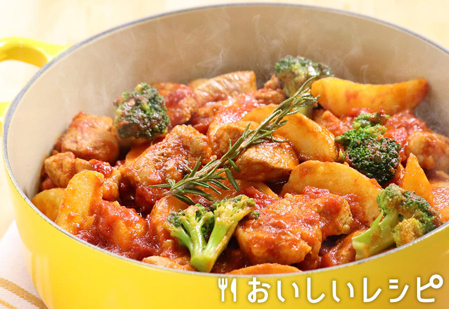 - 豚とじゃがいものイタリアン煮「黄金の味」とトマトの相性バツグン♪ 冷凍フライドポテトを使えば煮込み時間も短縮できます!