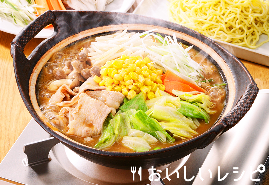 - コーンたっぷり団らん濃厚みそ鍋お子さまに人気のスイートコーンをたっぷりのせて。〆はラーメンで決まり!