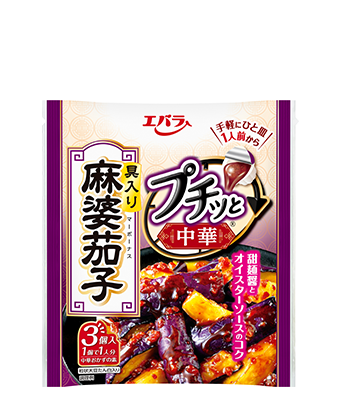- プチッと麻婆なす(プチッと中華 麻婆豆腐 使用)「プチッと中華 麻婆豆腐」で、麻婆なすも作れる! 手間なしでとろっとおいしく仕上がります。
