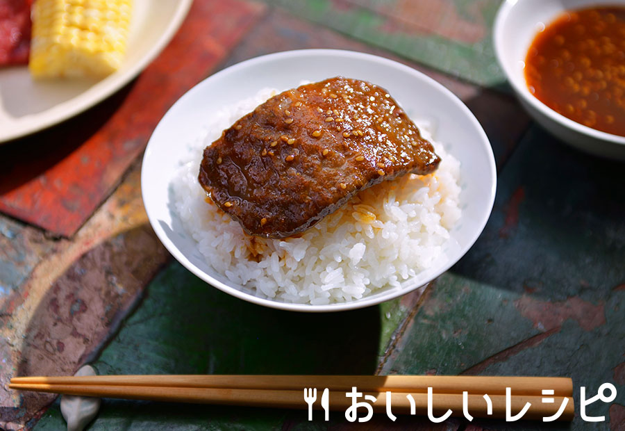 - 焼肉ごはん熱々ごはんに、焼肉のたれがからんだお肉をのせて。肉でごはんを包んで食べる、至極の食べ方!