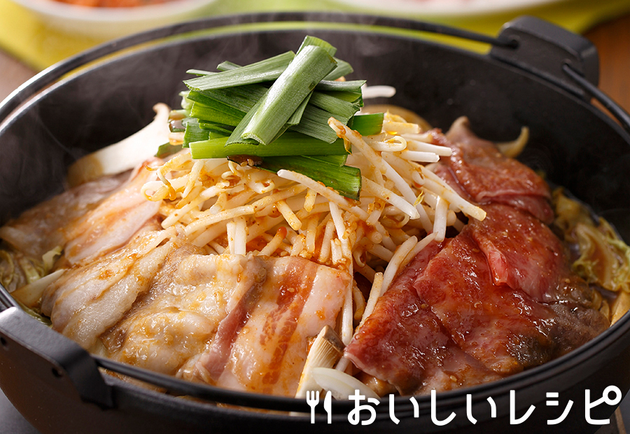 - 黄金焼肉鍋たっぷり野菜の上に肉をのせて、焼肉のたれで作るお鍋です!