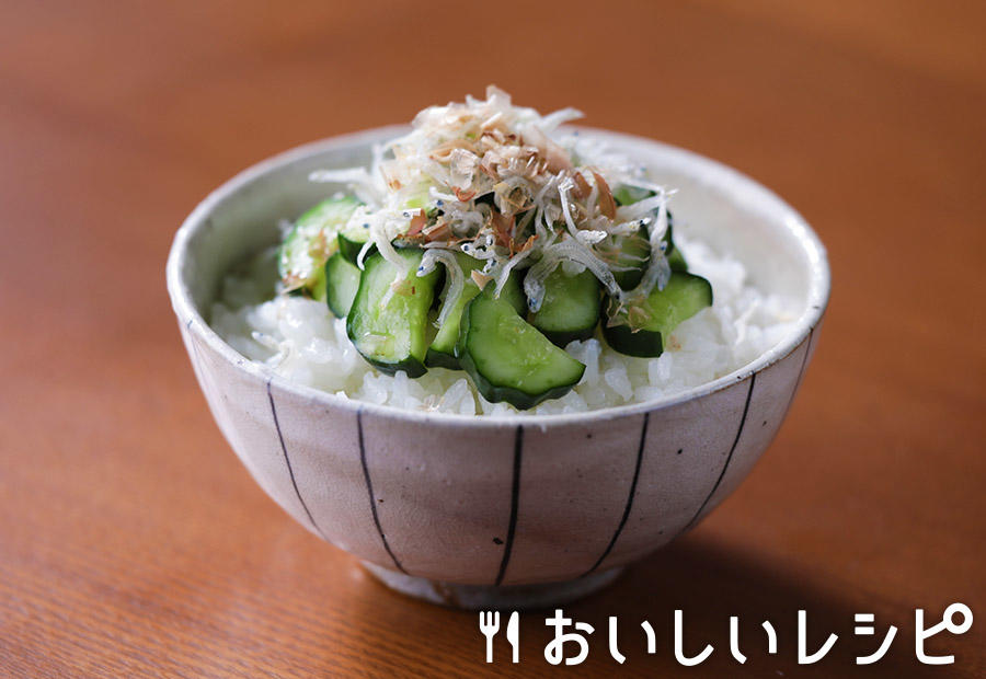 - きゅうりの浅漬けじゃこごはんホカホカごはんにきゅうりの浅漬けをトッピング♪ ちりめんじゃこやかつお節をのせれば、さらにおいしく!