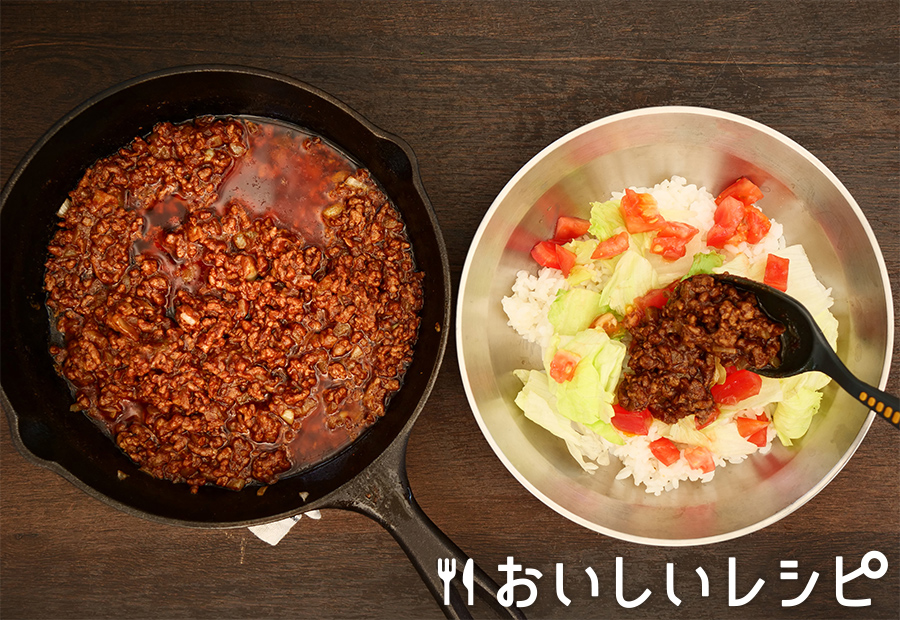 ※お好みで砕いたトルティーヤチップスをトッピングすると、食感が加わりおいしくなります。